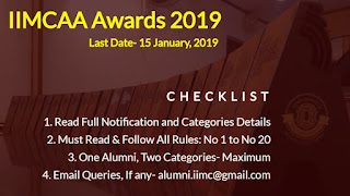 16. DEADLINE to submit the entries for IIMCAA Awards 2019 is 15 January, 2019.