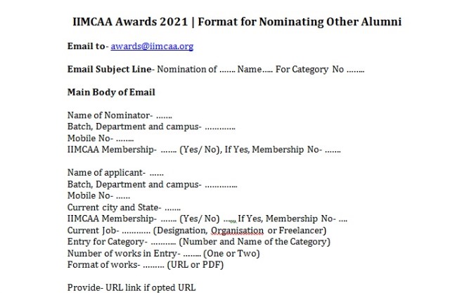 Email to– awards@iimcaa.org