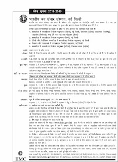 The sale of application forms will commence at IIMC New Delhi and Dhenkanal branch from 19 March 2012.