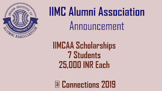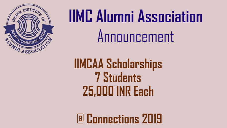 CC decided to start 7 IIMCAA Scholarships of 25,000 INR each for next 5 years begining 2019. Scholarships will be given at Annual Alumni Meet- Connections 2019 on February 17, 2019 at IIMC HQ, New Delhi.