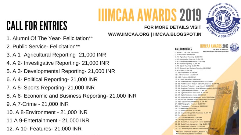 IIMCAA Awards 2019: Categories | Rules & Criteria | Deadline- 15 January, 2019