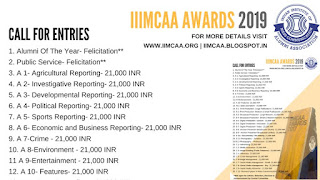 IIMC Alumni Association is moving forward in its endeavour to recognise the excellent works of its alumni in different sectors of mass communication. We are announcing entries open for IIMCAA Awards 2019 in 33 categories out of 35 categories of IIMCAA Awards 2019.