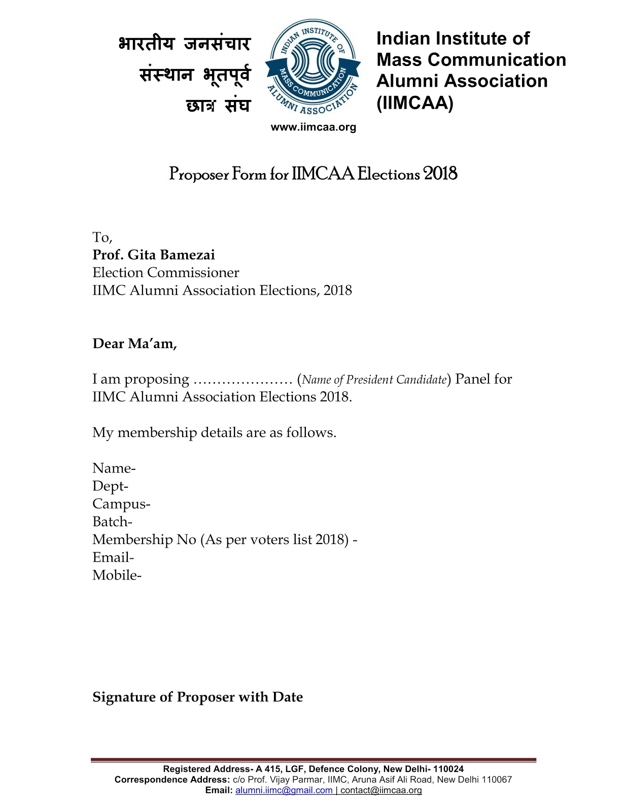 Please find attached Nomination Form and Proposer Form for IIMCAA Elections 2018.