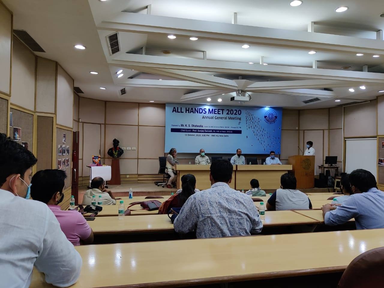 The Annual General Body Meeting- All Hands Meet 2020- of IIMC Alumni Association took place at IIMC HQ, New Delhi on Sunday, 11th October 2020. IIMCAA President Mr. Prasad Sanyal It was presided over the meeting.