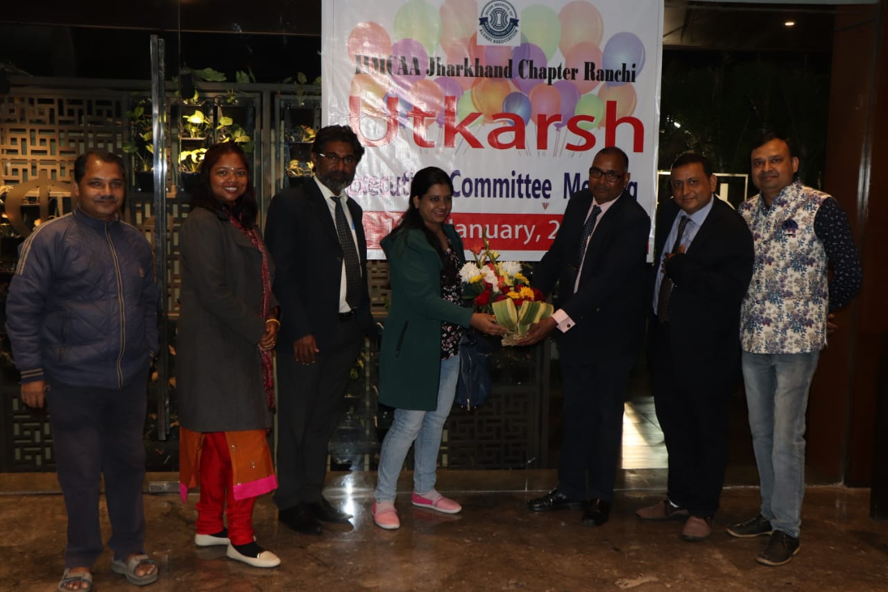 The Executive Committee of IIMCAA Jharkhand Chapter had a meeting in Ranchi on 10th January 2021. President of chapter, Mr. Manoj Kumar presided over the meeting which was attended by Vice President Dr. Dev Vrat singh, Mr. Amit Kumar Gupta, General Secretary Mr. Pranav Pratyush Das, Treasurer Mr. Kumar Rajesh and Organisation Secretary Ms. Puja Amrita Oraon.