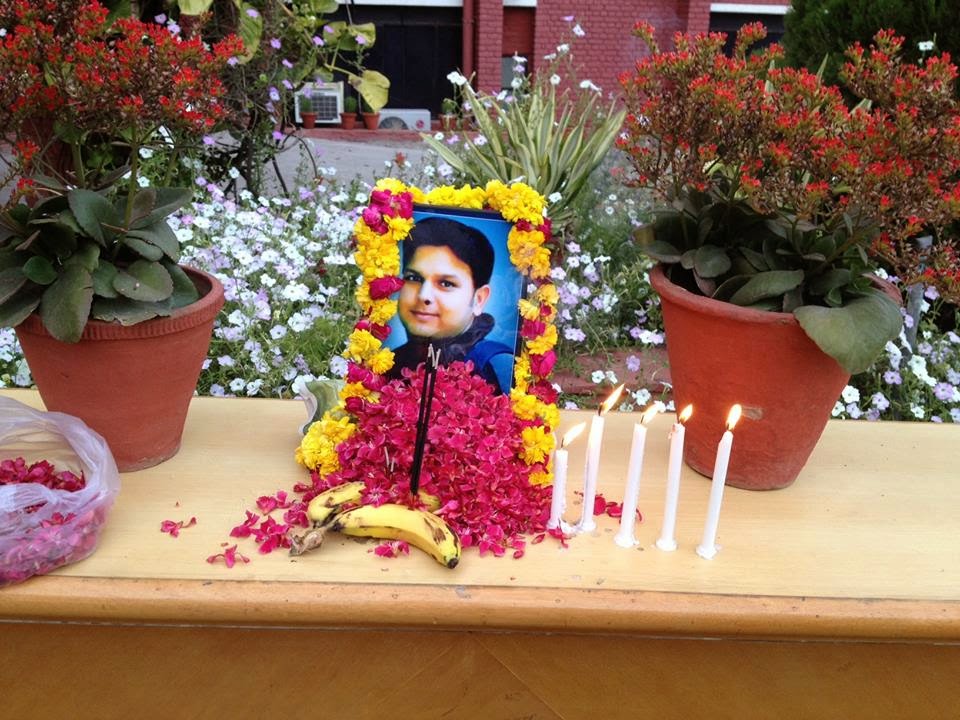 Condolence meeting was attended by Ranveer Singh HJ, 2008-09, Chetna Bhatia HJ 2008-09, Pankaj Kumar RTV 2012-13, Harshendra Verdhan ADPR 2004-05, Ritesh Verma HJ 2005-06, Nikhil Bhushan HJ 2010-11, Anil Kumar RTV 2011-12, Devesh Khandelwal HJ 2010-11, Abhinav Srivastava HJ 2010-11, Diwaker RTV 2010-11, Kamini Patil 2012-13, Nitin Gulati RTV 2012-13, Abhishek Chanchal HJ 2013-14, Jayant Jigyasu RTV 2013-14, Om Prakash Dheeraj HJ 2013-14, Vivekanand Singh HJ 2013-14, Keshav Kumar HJ 2010-11, Akshay Dubey HJ 2013-14, Vanson Soral HJ 2013-14, Vishal Shukla HJ 2013-14, Richa Banka RTV 2013-14, Jaya Singh EJ 2013-14, Debalina Dey RTV 2012-13, Ipsita Panda RTV 2012-13, Abhishek Ranjan Singh HJ 2007-08, Soumya Jha HJ 2007-08, Vijai Pratap HJ 2007-08, Naveen Kumar HJ 2007-08 and Abhishek Parashar HJ 2009-10.