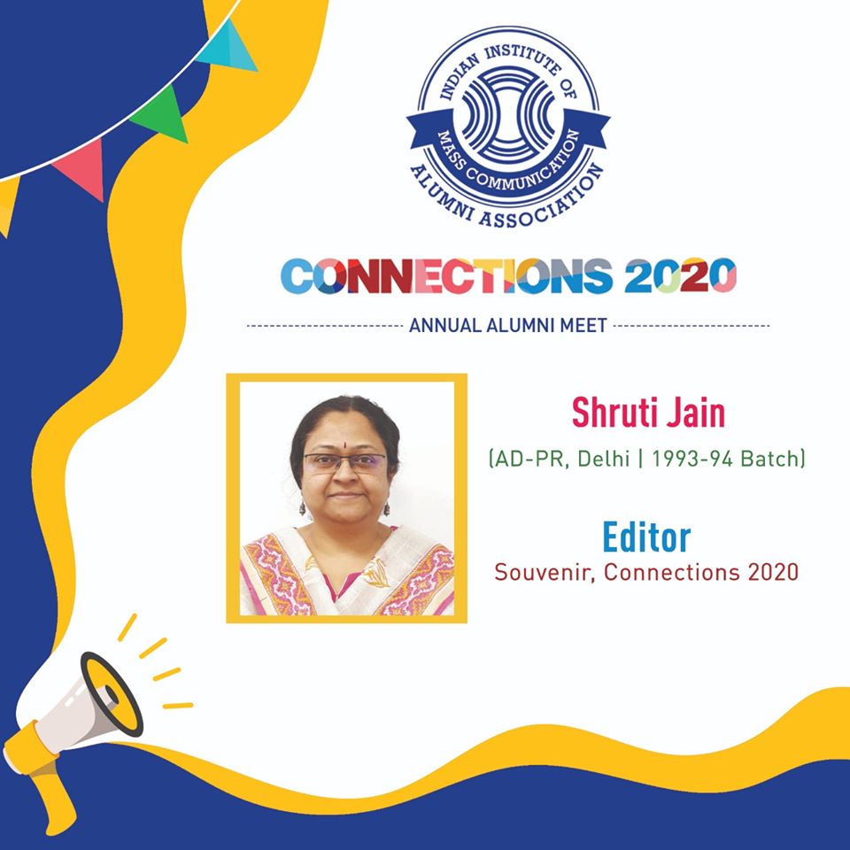 Ms. Shruti Jain, 1993-94 Batch Alumna (AD-PR, Delhi), will be the Editor of Souvenir Book of Annual Alumni Meet- Connections 2020.