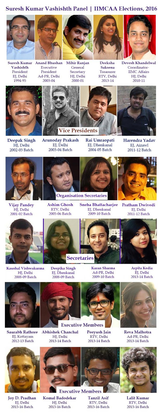 The Incumbent Central Committee of IIMC Alumni Association is proposing a Panel headed by Mr. Suresh Kumar Vashishth for IIMCAA Elections, 2016. Suresh Kumar Vashishth Panel is being proposed by the current team to carry forward the works undertaken.